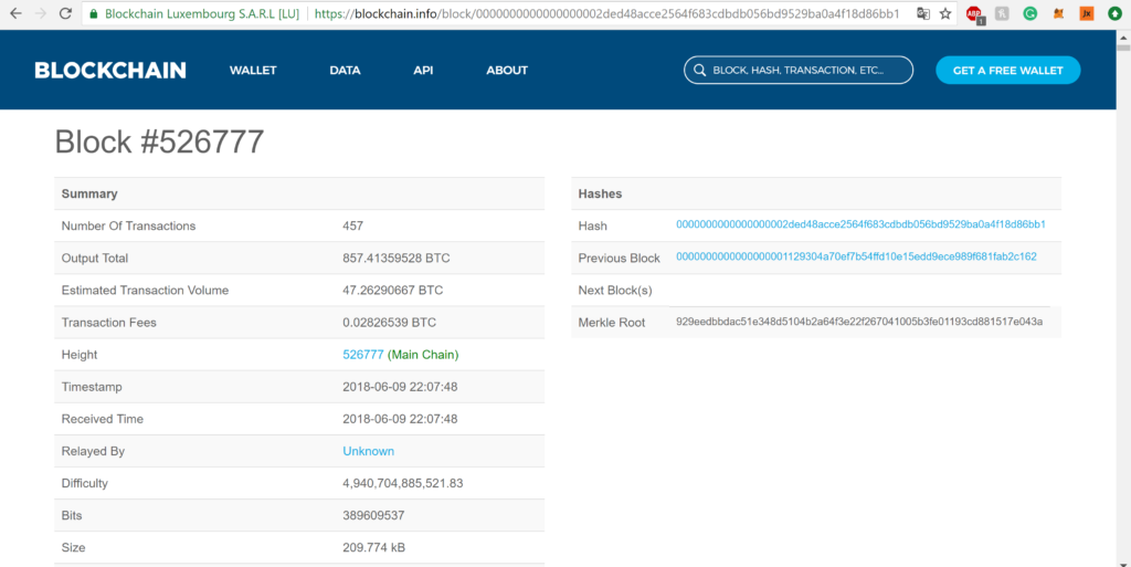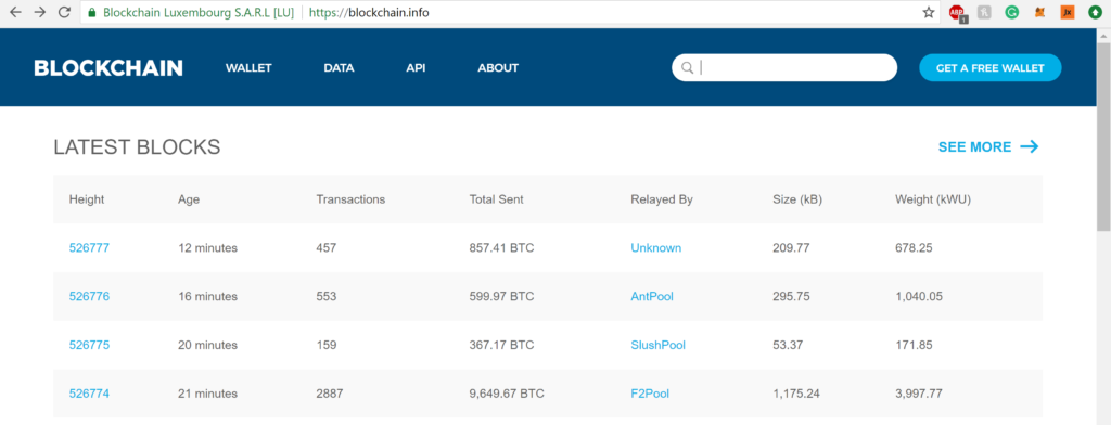 Blocks approved on the Bitcoin Blockchain